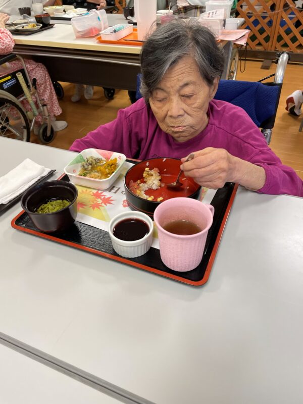 にぎり寿司はスシローを注文しました。ミキサー食の方には、“あいーと”でちらし寿司を注文して特別な食事を楽しんでいただきました。やっぱり皆さんお寿司はお好きな様子で、とても喜ばれていました。