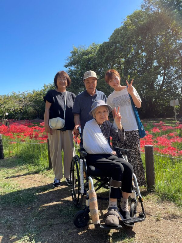 実習生さんも今回の外出を通し、外出支援の大切さなど多くの事を学ばれていました。未来の介護福祉士さんとして今回の外出支援を通してたくさんのことを学ばせていただきました。N様・ご家族様、ありがとうございました。