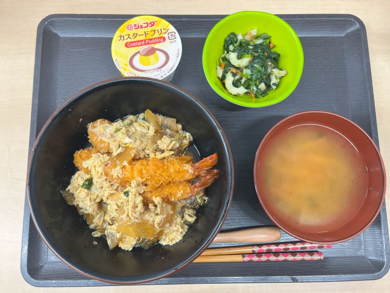 エビフライを卵でとじたご当地丼です。