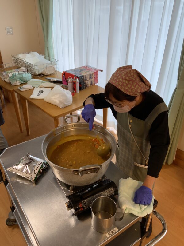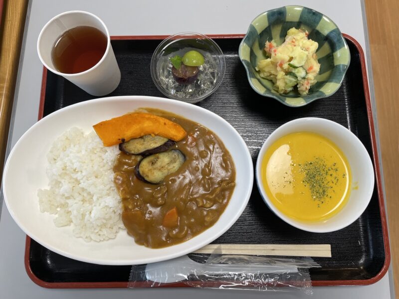カレーの米は副施設長から玉ねぎは施設長からルウは業者さんからトッピングのなすは地域の方からご寄付いただきました😊