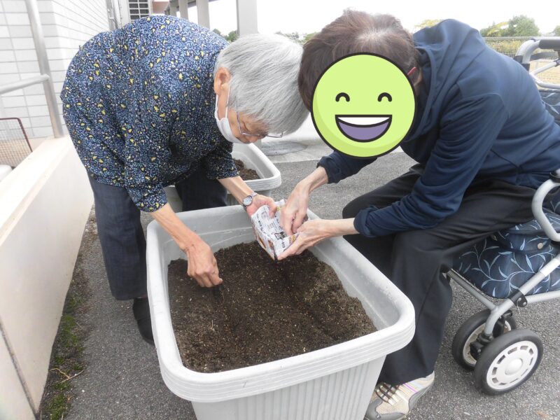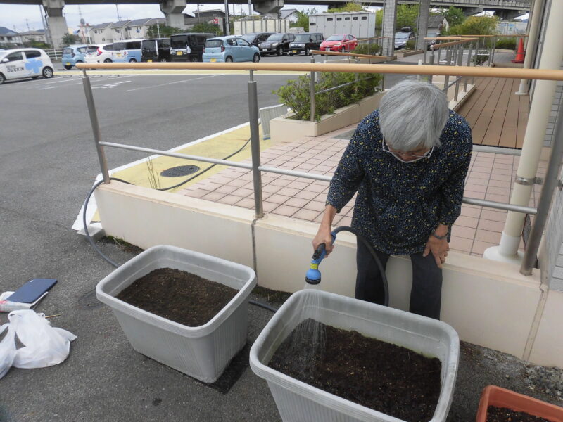 ひなたでは今年もプランターに、大根とほうれん草とさやえんどうの種を植えました。