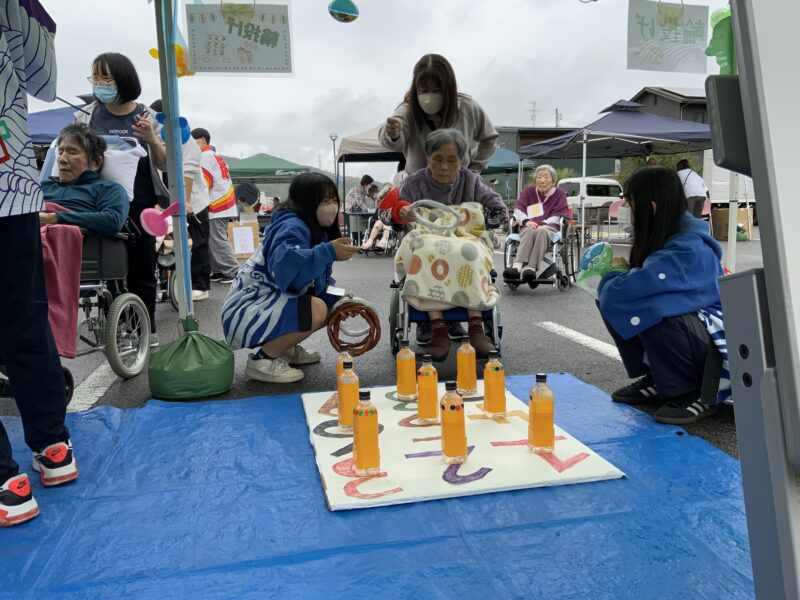 さらに女子野球部の皆さんは一日を通して、ゲームブースや屋台の運営、入居者の誘導など様々な場面で力を貸してくださいました。明るい声かけと元気いっぱいの対応に、入居者の皆さんも自然と笑顔になられていました。