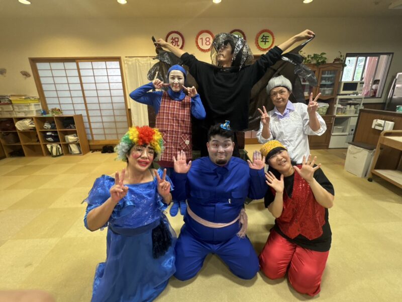 家族会で行ったつくしんぼ劇団の演目は、「アラジン」です!ランプがなかったため、やかんを代用しました。練習の成果がしっかり発揮されており、ご利用者とご家族皆様にたくさん笑いを届ける事ができました♪