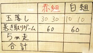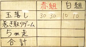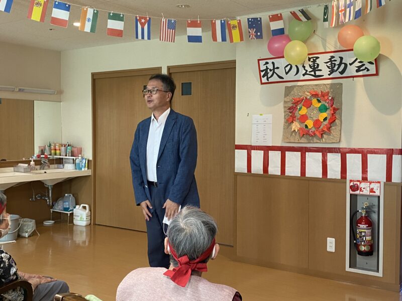 開会式では、理事長から挨拶をいただき、昨年の優勝チーム赤組から優勝旗の返還をです。