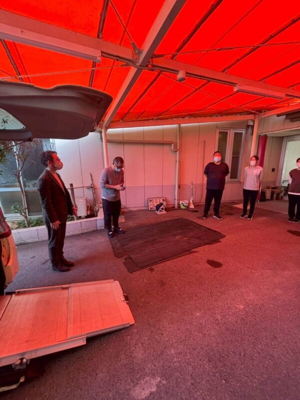 車イスの正しい固定方法や運転上の注意点など安全送迎の為に身につけておきたい知識を実車を用いて教えて頂きました。