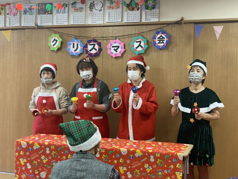 職員による「きよしこの夜」「もろびとこぞりて」のハンドベル演奏です。