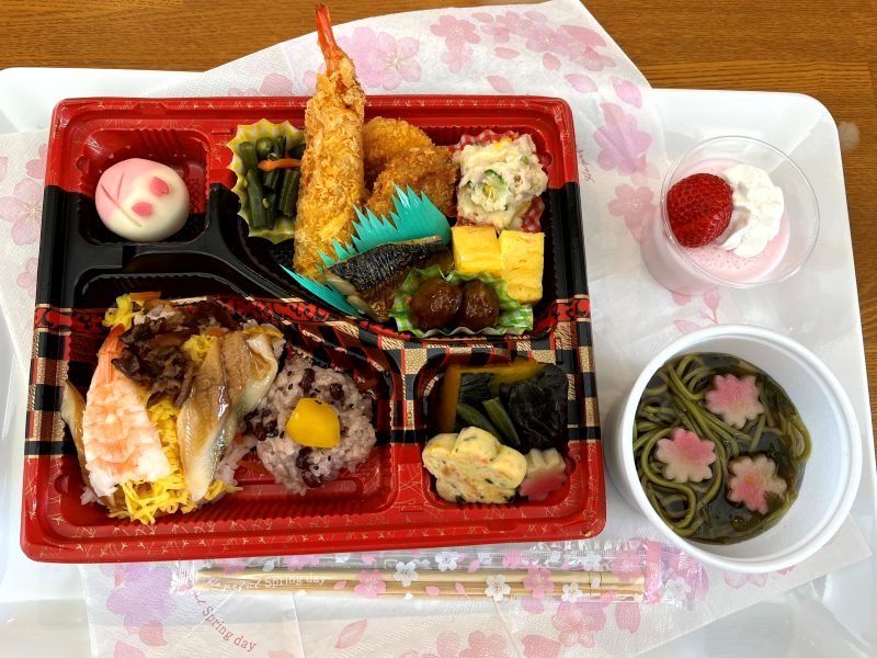 2026/03/18 穂香の里 お花見会(小規模多機能事業所) 特養に続いて小規模多機能事業所でもお花見会が開催されました。 河津桜は満開で、お花見日和です。 お花見弁当を作り、皆様に召し上がっていただきました。 前の記事へ 記事一覧へ