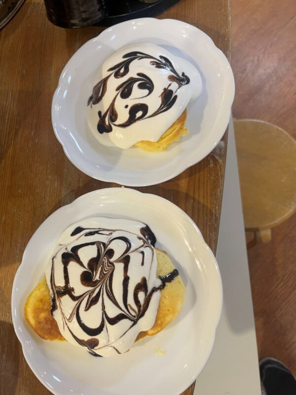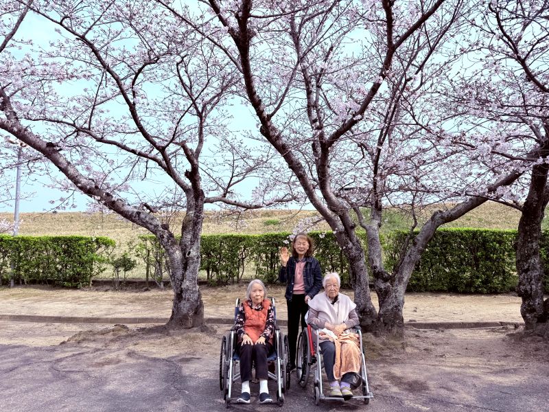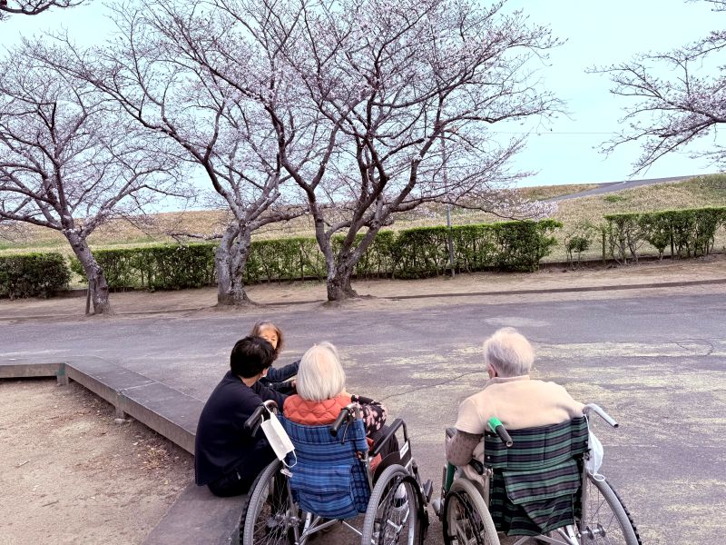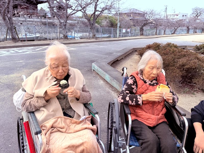 桜を見ながら青空の下で食べるおやつは格別に美味しいですね。